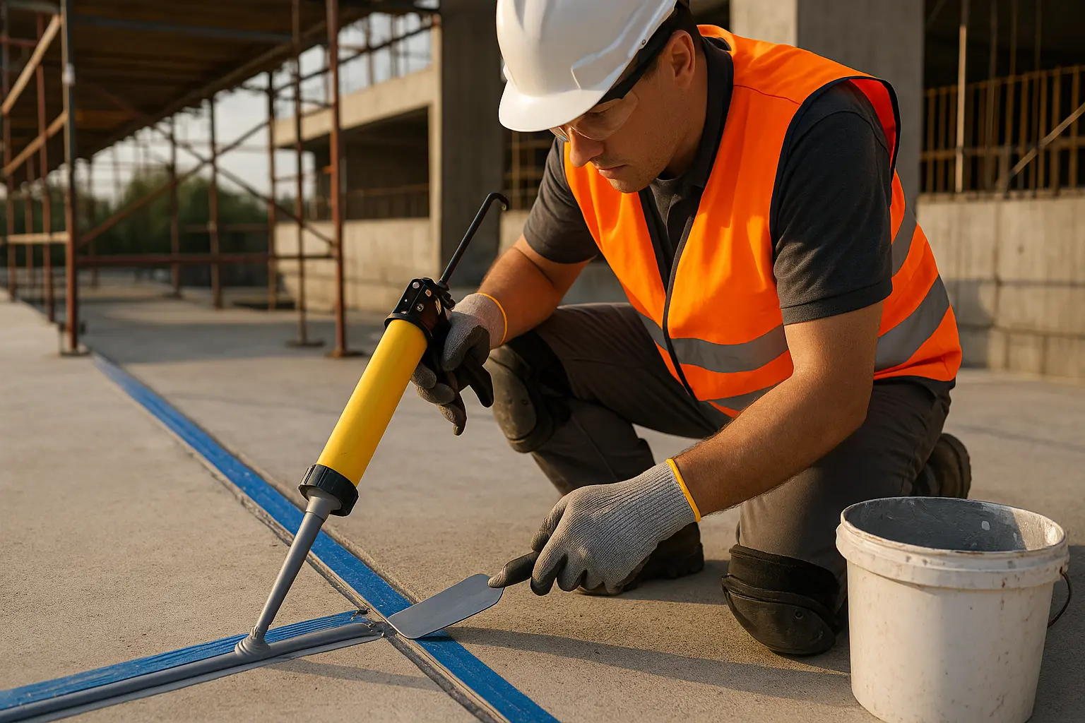 Bauhelfer (m/w/d) zur Abdichtung von Betonfugen.