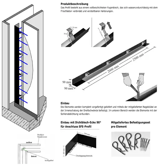Sollbruchelemente für Dreifachwände Wabos Dichtblech SFE (Sollriss-Fertigteil-Ecke) für Eckstoß