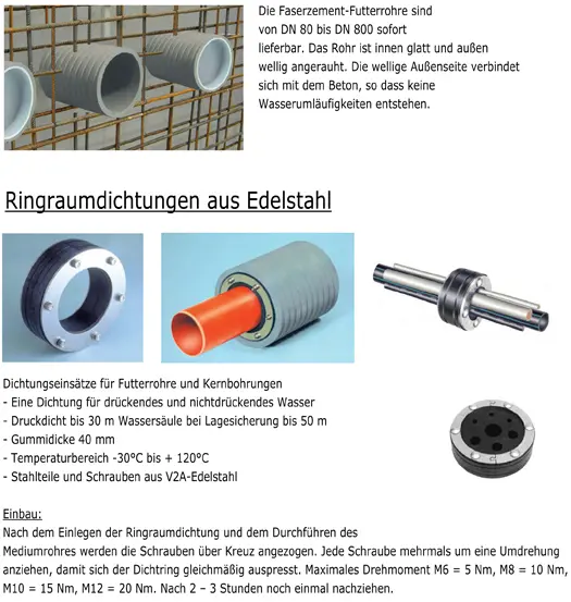 Sonderbauteil Hauseinführungen Faserzement-Futterrohre