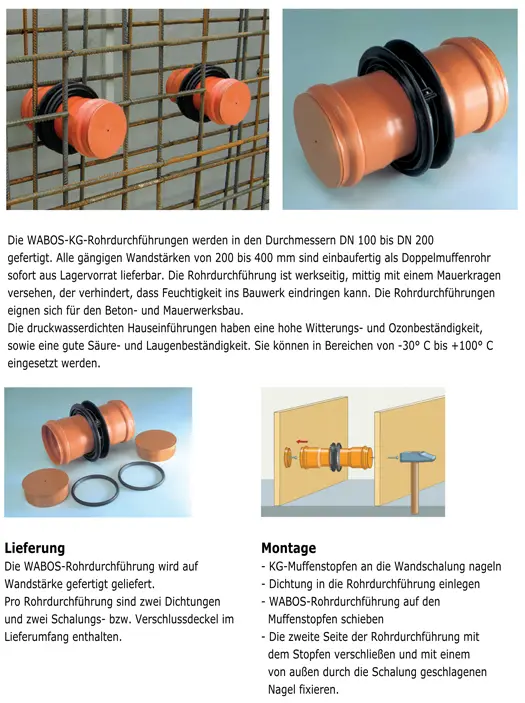 Sonderbauteil Hauseinführungen KG-Rohrdurchführungen