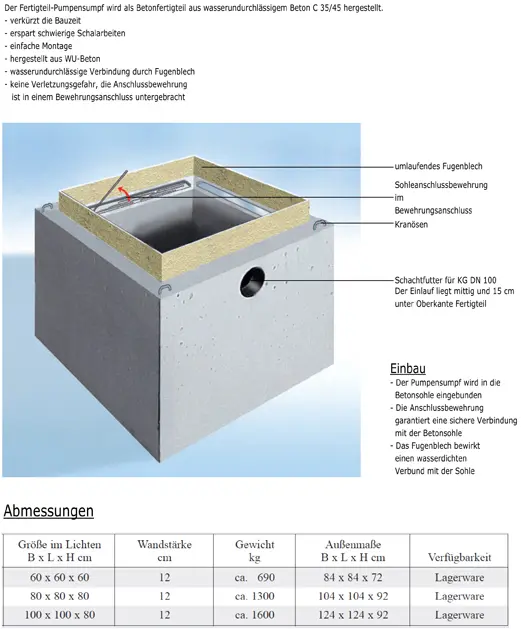 Sonderbauteil Pumpensumpf Fertigteil Pumpensupf